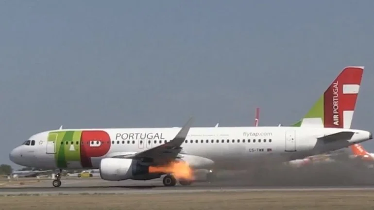 Aircraft engine explodes just before takeoff at Lisbon airport : no injuries