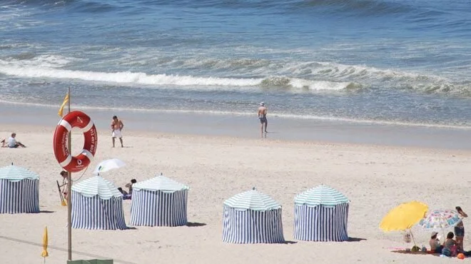 Located south of the beautiful town of Aveiro, Costa Nova Beach is known for the wooden fishermen's houses, painted with brightly colored stripes alternating with white. Built to house or store fishing tools, these restored “straws” today constitute pleasant holiday homes.