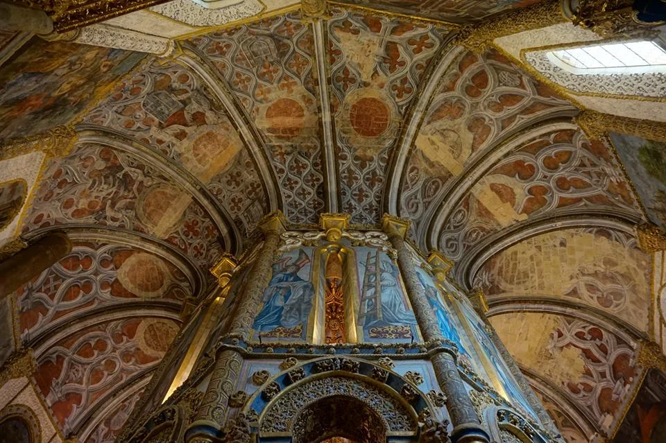 The most beautiful part of the Convent of Christ is undoubtedly the Rotunda. The round church of the castle, called the Rotunda, Romanesque style, was built during the second half of the twelfth century by the knights of the Temple. Outside, the church is a 16-sided fortified polygonal structure with solid buttresses, round windows and a bell tower. Inside, in its center, is the Rotunda, an octagonal structure connected by vaults to a gallery (ambulatory). The general form of the early church is similar to the round structures of the Omar Mosque or the Church of the Holy Sepulcher in Jerusalem.