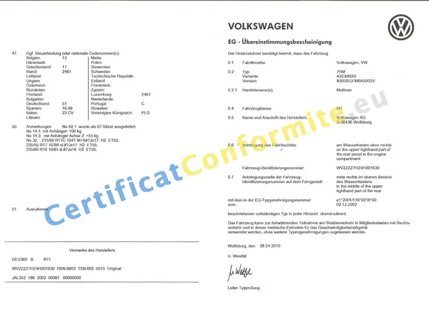 1 . Ne pas demander le Certificat de conformité de votre voiture