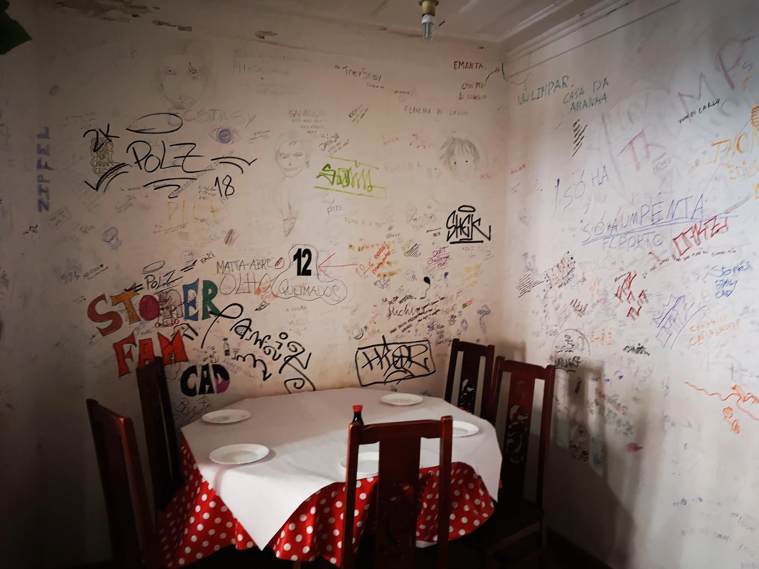 En attendant votre commande, vous serez ébloui par ce lieu emblématique de la culture hipster de Lisbonne. Les murs et fenêtres, marqués par l'humidité et la moisissure, témoignent du caractère unique de ces restaurants.
